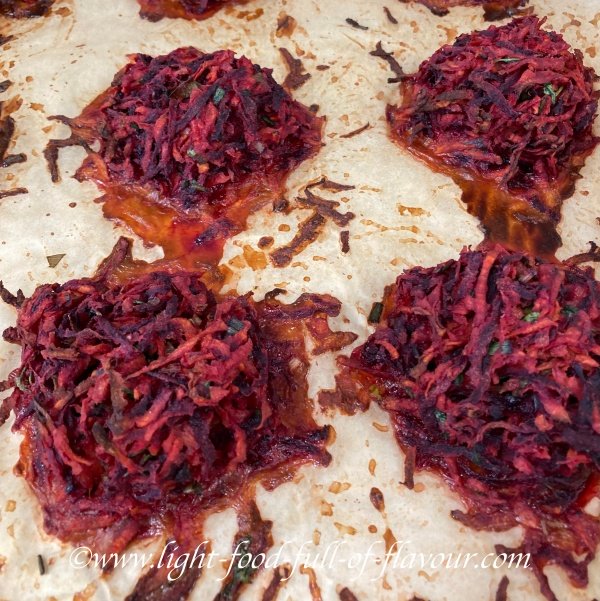 I often use a mix of grated raw beetroot, carrots and sweet potatoes in my rostis and add a fair amount of chopped spring onions, parsley and chives plus crumbled feta cheese and grated Parmesan. These are great to add to a lunchbox the next day.