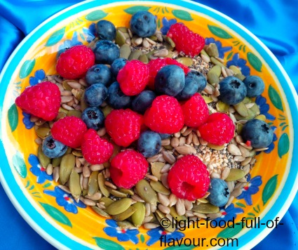 Add the seeds and nuts to things like porridge, natural yogurt or to a salad.
