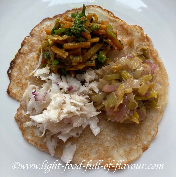 Rice Pancakes With Coconut Sambol And Stir-Fried Vegetables